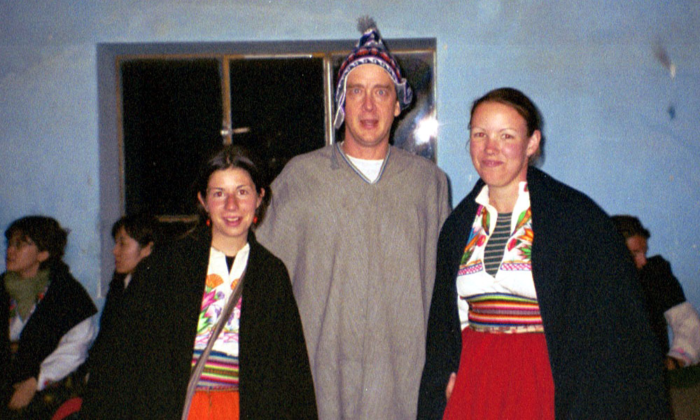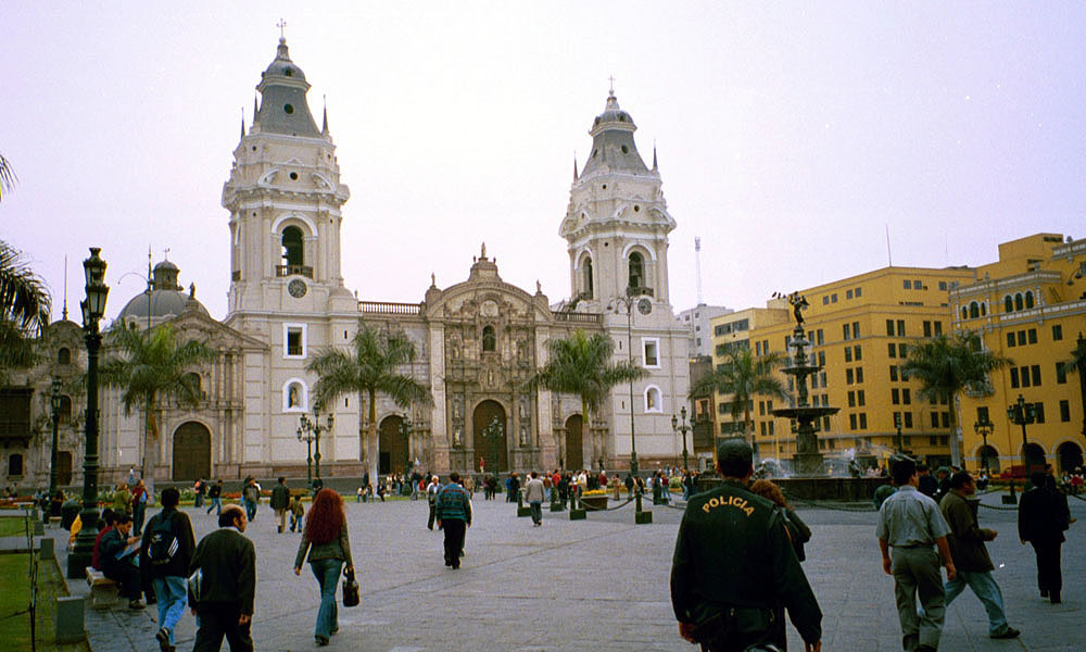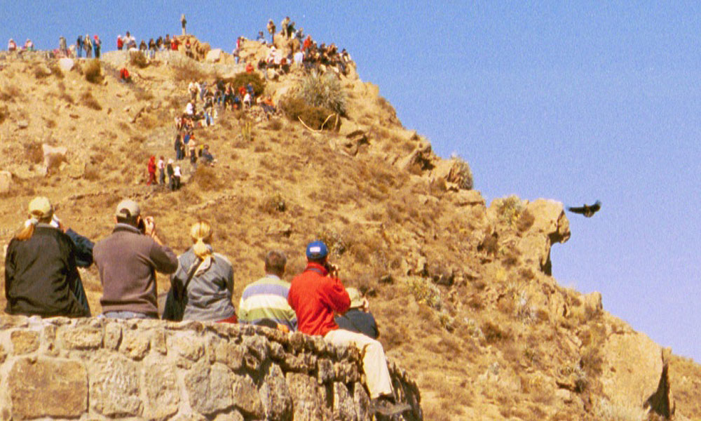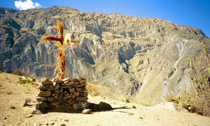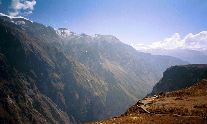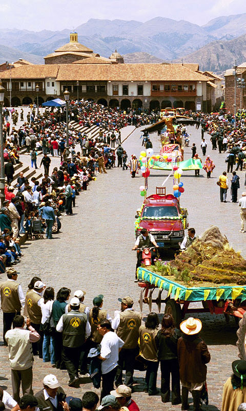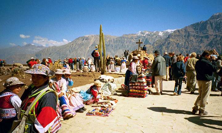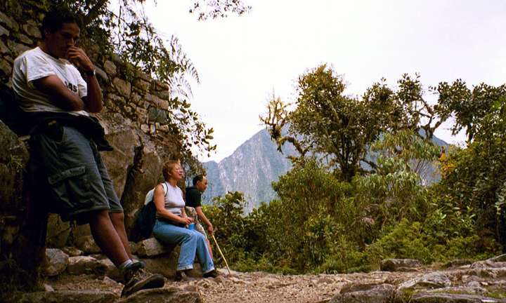 Handy map showing my routeKevin, realizing he was in the Lima airportNazca lines flight mapOur chariot of the godsThe CondorThe MonkeyThe Upsidedown MonkeyThe SpiderThe CrabThe Astronaut, waving a greetingCity of Cusco, the ancient Inca capitalCusco Plaza, home of direct salesInca/Spanish blending of costumes and mythThe weekly Cusco Sunday paradeSacsayhuaman fort above Cusco. Also known as "sexywoman" among tourists.A view of the fort walls. Cusco is laid out according to a puma plan, the fort serves as the head.Jumping off the train to start the Inca TrailStart of the Inca Trail (the two-day one anyway)One of the many stairs along the trail. Kev is feeling good now that he's got a walking stick.Taking a break on the trail. Our guide Rueben is on the left, our trailmate June is next to Kev.The Inca Trail proper, still walkable centuries laterThe waterfall just before Huinay Huayna (Forever Young) ruinsThe Huinay Huayna ruins after a long climbSome more ruins of something--oh, Machu PicchuI'm king of the ancient world!The royal observatory is the curved tower at center, the only building with non-rectangular wallsHut of the Caretaker of the Funerary RockStill-functioning Machu Picchu irrigation systemThe royal observatory. The various windows line up with sun sightings on the equinoxes.Machu Picchu at dawn, looking out into the valley beyondAll the walls in the sacred quarter were precisely fitted with no mortarThe royal observatory with Huayna Picchu beyondThe sacred quarter, free of tourists (almost)The main courtyard and sacred quarterA view from way on top of Huayna Picchu, looking down at Machu Picchu. Kev and friends are standing just below.Machu Picchu valley. Aguas Calientes is just around the bend in the river.Kevin went home after Machu Picchu, something about a wife and kids waiting for him. So I took a bus to Puno and headed out to the fabled floating islands of Lake Titicaca, two miles above sea levelOne of the floating islands. Natives have lived here for centuries, building 2m thick mats of reeds on which to live.A typical village with working boatsThe construction method for creating the islands--take a reed stump and start twisting reeds into it.A couple of boat prows. Note the use of soda bottle bottoms for the eyes.Boat landing for Isla Amantani where I will spend a night with a local familyAnd here's the local familyThere's no electricity on Amantani so when the sun goes down, it's real dark. But there's Coleman lanterns and beer so everyone gets dressed up and goes dancing. If the altitude doesn't get you, the dancing will.My roommates--Noemi from Spain and Megan from Melbourne, AustraliaGrethle, a native Lime a (from Lima that is) who graciously volunteers to show me around her city when I arrive there a week later.Isla Taquile locals hanging out in the plaza.Your basic hot shower. Note that if you forget to turn off the breaker after shutting off the water, the heating chamber will fry. Also note lack of instructions.Taquile square. Interesting to note that single and married people wear different hats, and the positions of the hats indicate whether they're having a good day or bad.A group of Taquile women, all apparently having a good dayThe Descent of 550 Steps to leave Taquile islandThe venerable SS Yavari, a ship that was hauled in pieces up the Andes to the lake back in the mid-1800s. Rescued from destruction, it is now being restored for future journeys.The Condor Mirador (watchtower) high above the city of Puno, overlooking Lake TiticacaA view on the way from Puno to ArequipaThe beautiful plaza of ArequipaInside the infamous convent of Santa Catalina in ArequipaThe wash tubs where centuries of nuns scrubbed, Santa Catalina conventThe mighty Colca Canyon, deepest in the world and scenic to bootA village church in the canyonThe canyon from outside the village. We started waaay at the top, about at the center of the photo.Dinnertime at my host's house--alpaca steaks. I stayed one night here after climbing down the canyon.No cuy (guinea pig) was served that night, so they felt safe to scurry around the floor and look cute. And yes, they taste like chicken.The night's accommodationsA memorial to one of the last Inca-Spanish battles that took place deep in the ColcaAh, the Oasis at the bottom of the canyon. We're heading for the hut with the pool.The Cruz de Condor on the rim of Colca CanyonThe great tourist mart for those waiting to see the condorsYep, a condor. He's got a nine-foot wingspan, but it's hard to tell here.Making another passOne coming in to land and sun himself. Note the scale with humans on the hill.Coming around for another look at the tourists, the Cruz de Condor in the foregroundFurther up the canyon. Note the terracing of the entire valley, the result of centuries worth of labor.The plaza of Chivay town, on the way from Colca back to ArequipaLima, Miraflores district, the view from my five-star hotel (what the hell, it was my last night in Peru)Plaza San Martin, the plaza at the heart of LimaChanging of the guard at the Lima capitol buildingLima's main cathedral, La Catedral right on the Plaza de ArmasPlaza de Armas in central LimaOne of the many central Lima churchesGrethle outside of the church of San FranciscoThe catacombs of San Francisco--the bones in the foreground are piles 4m deepThe very decorative Well of Souls in the San Francisco catacombsThe Lima National MuseumCusco royal burial chamber, reconstitutedA typical Miraflores church on the plazaThe last evening in Peru, walking back along the Miraflores shoreline